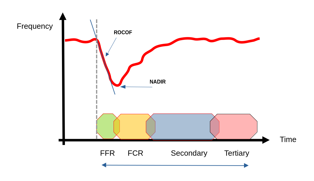 When there is a sudden change in the electrical network due to a fault, which is likely to result in a loss of generation or loads, there is an immediate imbalance between generation and demand, causing a change in the power frequency. The greater the power imbalance or the weaker the network, the greater the frequency derivative (ROCOF). The faster the countermeasures are activated to compensate, the less dangerous the frequency nadir will be.